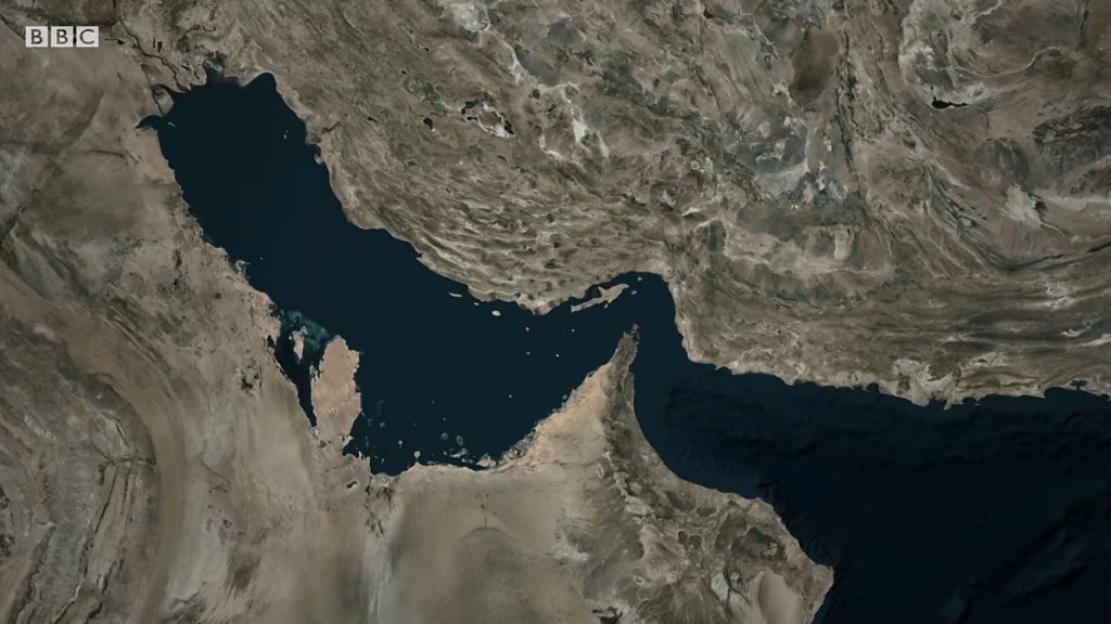 O Estreito de Ormuz conecta o Golfo Pérsico (ao norte) com o Golfo de Omã (ao sul), e “deságua” no Mar da Arábia. Na sua parte mais estreita, o estreito tem 33 km de largura, com canais de navegação de apenas 3 km em cada direção.