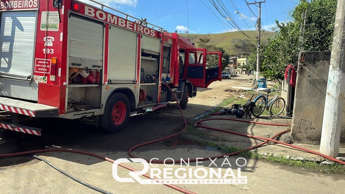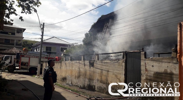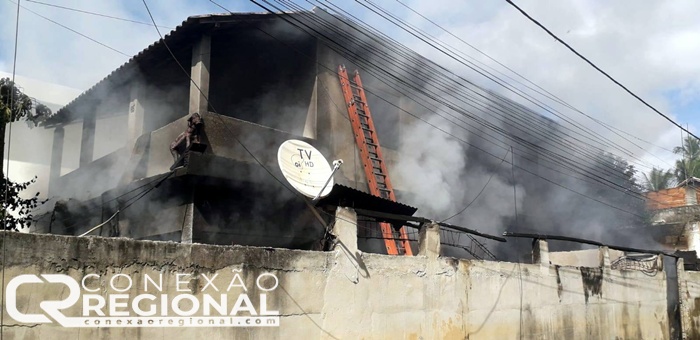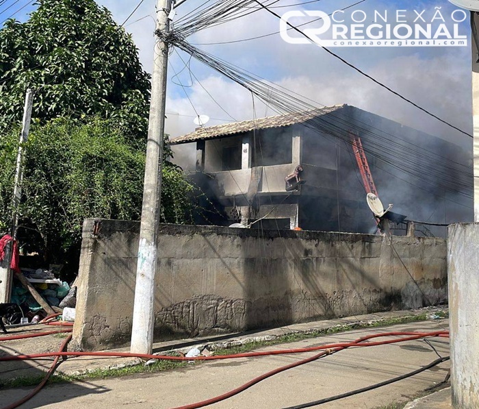 Casa de dois andares em chamas no bairro Cachoeiro em Cardoso Moreira