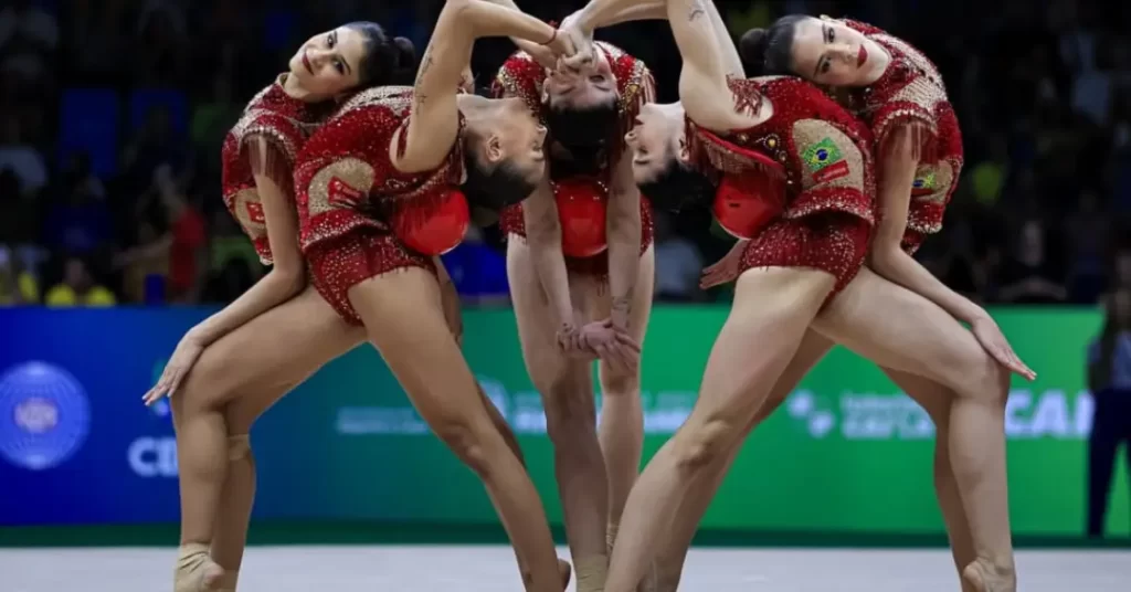 O time formado por Duda Arakaki, Maria Paula Caminha, Mariana Gonçalves, Sofia Pereira e Nicole Pircio obteve 28.550 pontos, segunda maior pontuação no aparelho, atrás apenas da Ucrânia, que ficou com o ouro por uma pequena margem.