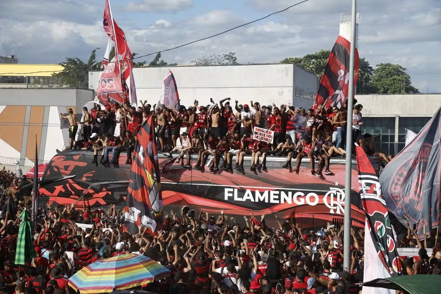 Torcedores chegaram a invadir o ônibus do elenco, momento registrado em vídeos dos atletas nas redes sociais. O Flamengo, que esteve em Belo Horizonte na terça, para disputa de partida decisiva do Brasileirão, fez questão de ter um último contato com a torcida antes da final e voltou ao Rio de Janeiro para o evento, para o qual convocou sua torcida.