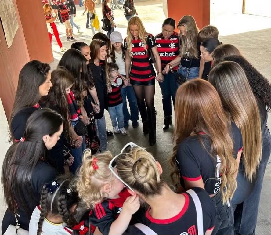 O registro do momento foi postado nesta segunda-feira, dia 1º, pelo ex-jogador e atual comentarista esportivo Junior. Na legenda da foto, ele destacou a parceria das mulheres dos campeões rubro-negros e se emocionou com a união entre elas: