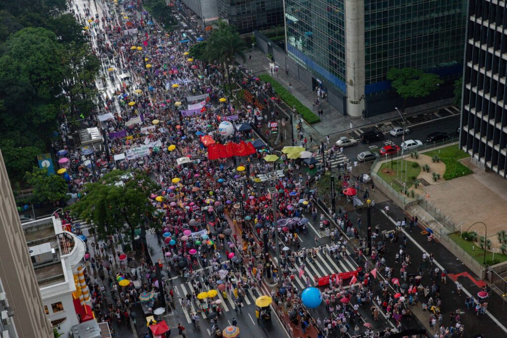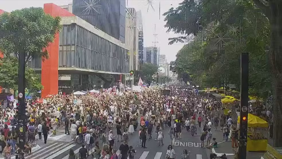 Protesto contra feminicídio reúne manifestantes na Avenida Paulista em SP