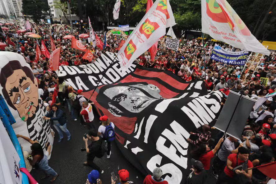 Em Brasília, o protesto ocorreu na Esplanada dos Ministérios, com concentração no Museu Nacional, em uma caminhada em direção ao Congresso Nacional. Apoiadores do presidente Luiz Inácio Lula da Silva se reuniram com bandeiras de PT, Psol e PCdoB, legendas que convocaram a manifestação, e gritaram palavras de ordem como “Sem anistia!” e “Bolsonaro na cadeia”. Além da capital federal, também já ocorreram manifestações desde a manhã em cidades como Belo Horizonte, Salvador, Manaus, Belém, Natal, São Luís, João Pessoa, Campo Grande, Maceió, Teresina e Florianópolis.