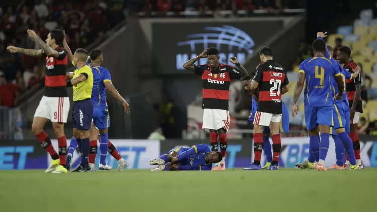 Mas aí o Flamengo deu nova bobeira defensiva. Ayrton Lucas deixou Rodrigo Andrade dominar e bater por cima de Andrew, já aos 51 minutos do primeiro tempo. A vantagem foi encurtada pouco antes do intervalo.
