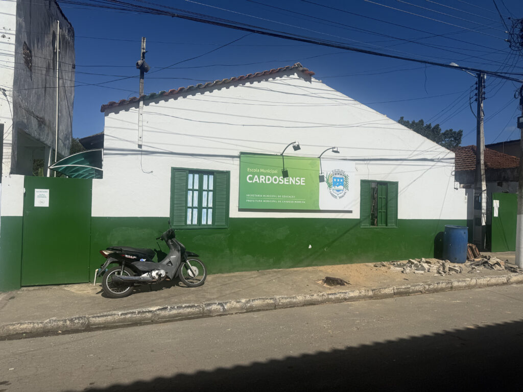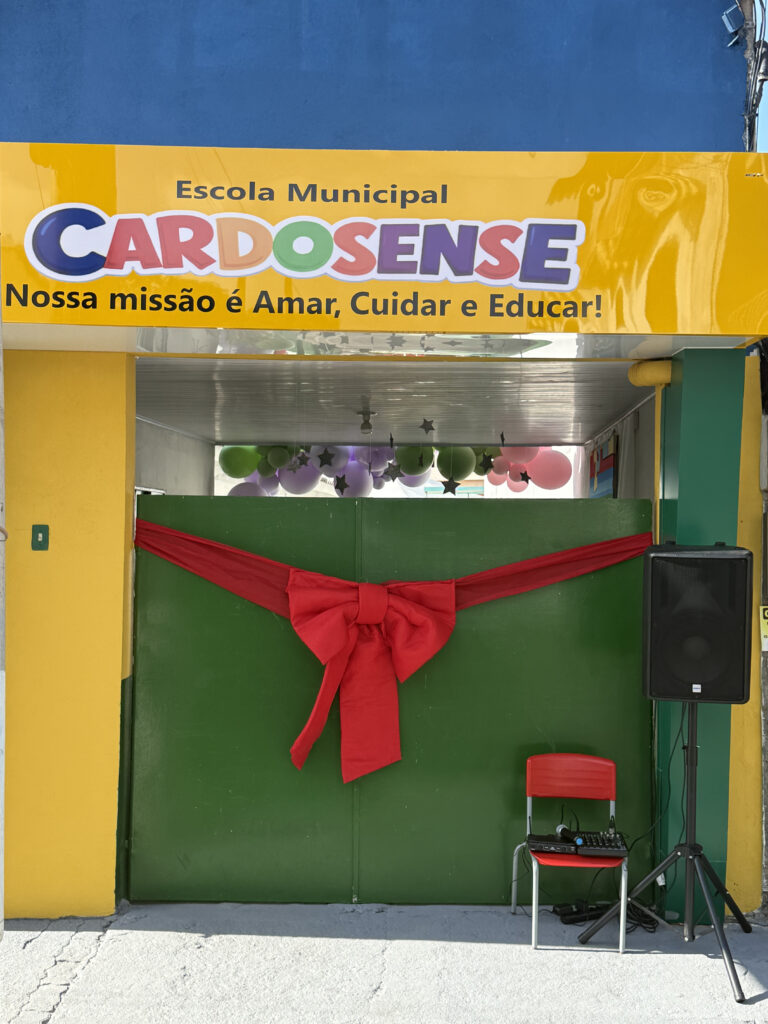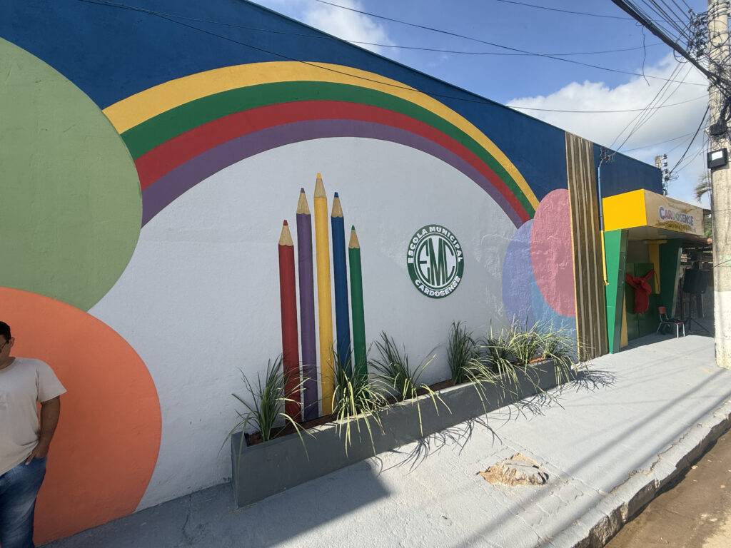 A primeira unidade contemplada foi a Escola Municipal Cardosense, que passou por importantes intervenções estruturais e estéticas. O pátio foi totalmente reformulado, com a instalação do parquinho em um novo espaço, garantindo mais organização e segurança para as atividades recreativas. As salas de aula foram revitalizadas e a fachada da escola ganhou uma nova identidade visual, mais acolhedora, moderna e colorida, proporcionando um ambiente ainda mais alegre e estimulante para os alunos.